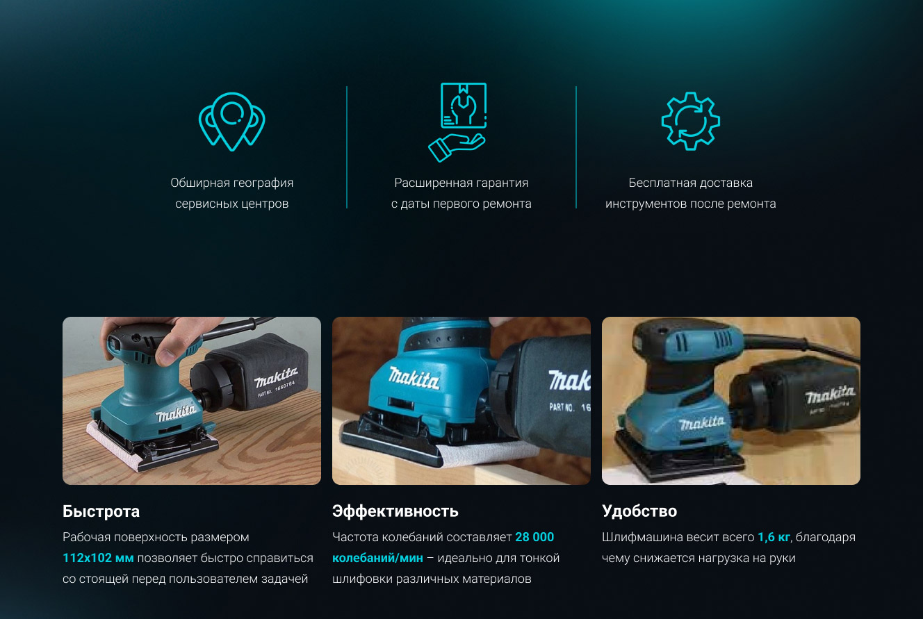 Компактный, эргономика, относительно тихий, легкий, простая замена шлифовальной бумаги - стандартная и держится крепко, подошва заменяема и еще много чего хорошего.