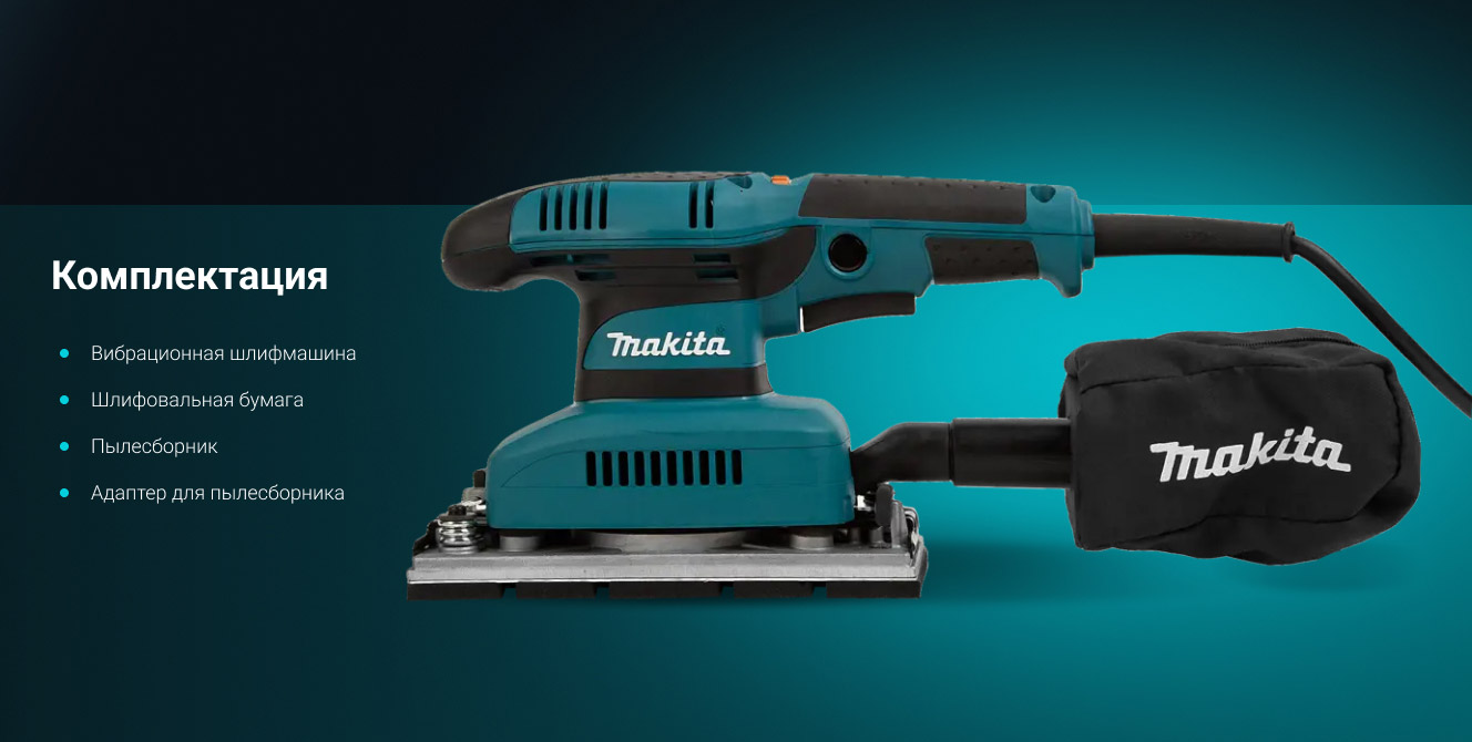 Вибрационная шлифмашина Makita BO3710 предназначена для шлифования и выравнивания больших плоский поверхностей. Размер рабочей поверхности - 93х185 мм, обработка поверхности осуществляется быстро. Пылесборный мешок предназначен для удаления пыли и сосредоточения ее в одном месте. Возможно подключение пылесоса - для продолжительных непрерывных работ. Прорезиненные вставки на ручке снижают уровень вибрации.