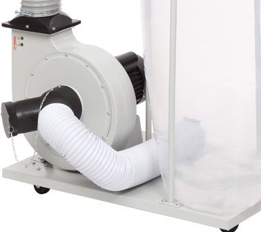 Благодаря специальному адаптеру, закрепленному на входном патрубке, агрегат способен удалять отходы сразу из двух мест проведения операций по резке. Асинхронный двигатель мощностью 1500 Вт обеспечивает высокую производительность всасывания.