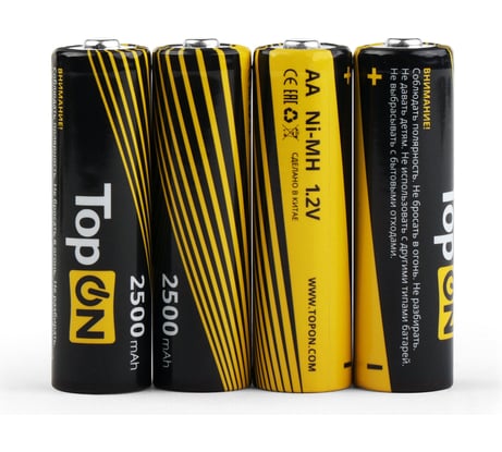 Отзыв Аккумуляторные батарейки TopOn AA 2500mAh 1.2V Ni-MH HR6 4 шт в боксе TOP-NH-AA-2500-4B