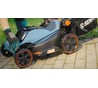 После первого использования понял, что стрижка газона перестала быть рутиной. Самоходный полный привод обеспечивает такой плавный и предсказуемый ход, что управление требует минимальных усилий. Телескопическая ручка настраивается под рост. Ширины захвата в 43 см хватает, чтобы быстро покрывать площадь, но при этом косилка не громоздкая. Я использую её с аккумуляторами от своей садовой техники Senix, что невероятно удобно и экономит деньги. Отсутствие шума, вибрации и выхлопа — это те преимущества, от которых уже не откажусь. Одна из лучших покупок для дома