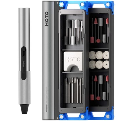 Отзыв Беспроводная шлифовальная мини машинка-гравер HOTO с набором аксессуаров SNAPBLOQ Electric Mini Rotary Tool Kit (38 предметов, серый, R-A04) HFE0022GL