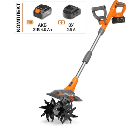 Отличный маленький культиватор, который, конечно, не заменит большого, но помочь в работе поможет. Надежд сверхъестественных не было, но в целом для небольшой грядки вполне себе хороший вариант. Фрезы не большие, удобная ручка. Аккумулятора +- на час работы хватит. Он в комплекте идет. Мне, как девушке, удобно с ним работать:)