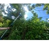 Машинка сразу произвела впечатление, ещё в своей огромной двухметровой коробке. Штанга у неё хоть и телескопическая, но её основная длина всё равно довольно большая, плюс можно ещё где-то на метр её выдвинуть, чего хватает даже на очень большие кусты, что нам было нужно. Спокойно кромсает сантиметровые жерди. Порадовала предусмотренная на конце аккумулятора скоба, с которой можно упирать его в землю, не боясь повредить аккумуляторы. В целом покупкой весьма доволен - осталось только дождаться осени чтобы как следует подровнять кусты так, чтобы начали наконец-то расти внизу, а не вверх. Теперь-то я достану их без стремянки.