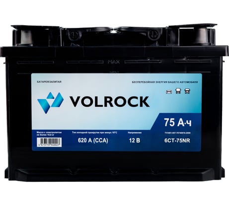 Отзыв Аккумулятор VOLROCK 6СТ-75NR (O.П.) 620А конус 4673770940027
