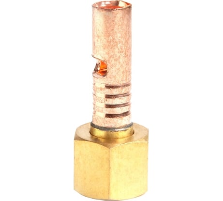 Отлично подошел для газового шланга 10 мм к резьбовому соединению М12 * 1мм. Изготовлен из латуни и меди по данным производителя. Товар качественный, к покупке рекомендую.