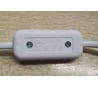 Нормальный выключатель, характеристикам соответствует. На 2 провода с разрывам одного из них. Единственно, он подходит только для плоских шнуров. Для круглого, как в моём случае, пришлось поработать ножиком и подрезать прижимные перегородки.