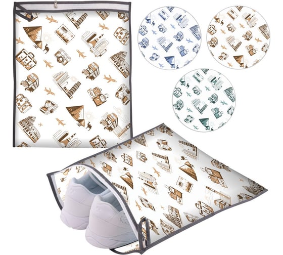 Чехол для обуви МУЛЬТИДОМ ПУТЕШЕСТВИЯ размер 36х32см МТ70-143