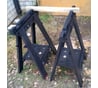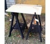 В целом, понравились. Полочки и резиновая основа ножки чуть из пазов вышли при транспортировке, всё удалось восстановить руками, без инструмента. Высота порядка 77 см, со столешницей вровень с моими складными верстаками. Прорези под брус примерно 54 мм. Устойчивые, крепкии.