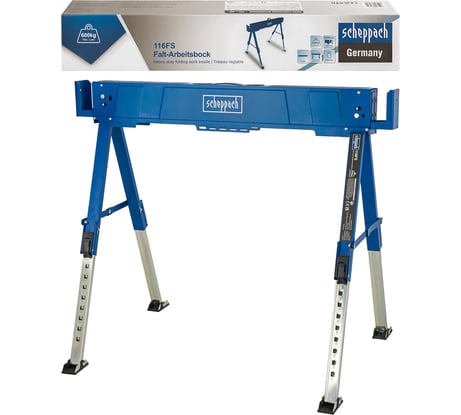 С разницей в неделю приобретены две штуки. Полная комплектация, отсутствие повреждений, простая сборка. Заявленные 200 кг, скорее для статики: основная нагрузка придется на два штыря в 7 мм. Усиления по осевой линии нет. Металл на нижних поперечинах около 1,8 мм с краской. Система подпружиненных штырей для установки высоты подклинивает при перекосах. Складывается не полностью: ножки и центральные опоры не прилегают друг к другу. По конструкции, это аналог складных верстаков. Как основа для распиловочного или выносного стола с несколькими брусками и/или с листом фанеры хороший вариант рабочего места.