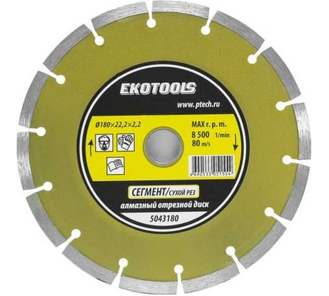 Отзыв Диск отрезной алмазный по камню Сегмент 180x22.2x2.2 мм EKOTOOLS 5043180