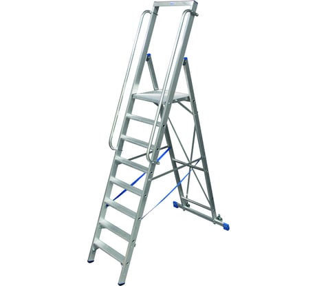 Отличная стремянка. На монтажах спк 6 ступеней более чем . 1600мм лезет в багажник и в салон поперёк в фолькст5 . взял на пробу нужна ли мне двухстороннняя. Думал потом куплю более крепкую модель сепро. Или стабилу. Но и этой оказалось достаточно. Мой вес 120 лежит с грузом. Также иногда работаем вдвоём с разных сторон. 200кг держит..