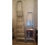 Покупал на работу, что доставать оборудование с верхних полок стеллажа. Удобная, при сложение компактная. Имеется страховочные ленты. Вес 80-90 кг. держит спокойно, по ней "прыгаем", т.е. шустро забираемся спускаемся. Единственный как по мне минус, на кафельном полу скользит.