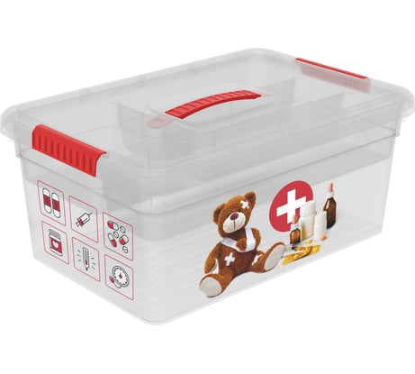 Брал, чтобы навести порядок в шкафу с лекарствами. Защёлки весьма жёсткие, выдержат ли 10 кг - пока не проверяли. Но и не собираемся. Вообще, не для частого использования, не для фельдшера "скорой помощи". Я туда "сослал" редкоупотребимые лекарства. Хорош в плане дизайна - милая картинка на боку. Если хочется эргономично использовать внутренне пространство, то можно прикупить "Лоток-органайзер FunBox S 00000048383" - как опция.