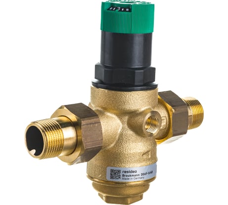 Компактность. Допускается установка вертикально, и горизонтально. Ремонтопригодность - ремонт заключается в замене внутренней вставки D04FMA, для чего клапан даже не надо демонтировать, нужно просто отвернуть пластмассовую часть корпуса - опыт, навыки не требуются. Для регулировки имеется рукоятка, но вместо нее можно использовать и отвертку. На корпусе одновременно две резьбы - 1/2' и 3/4' наружная. Резьба под манометр 1/4' - можно ставить манометры любого производителя.