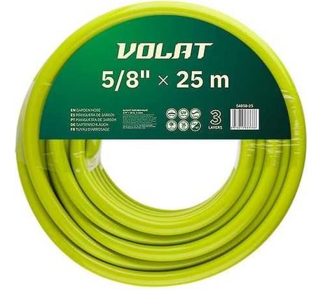 Длинный, диаметр 5/8, эластичный. Хорошо стыкуется со шлангом 3/4. На фото - шланг 5/8 входит внутрь шланга 3/4. Раньше гнал воду с колонки до синей бочки, потом перекачивал воду на 2 этаж в большую бочку, из неё - раздача по дому (такой вот у меня водопровод на даче). Теперь засовываю жёлтый шланг, о котором речь идёт, внутрь тёнозелёного. Так загоняю воду вверх без насоса. С хомутом напор 5 м держит.