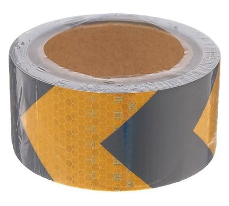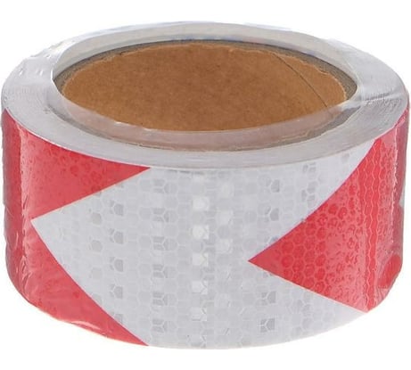 Бюджетная отражайка. На белый наносятся красные полоски краской, ночью отражается больше белый. Намотана на втулке, которая выпадает.