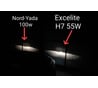 Светят конечно не белым а с легкой синевой. По мощьности наверно соответствуют 55 ватам