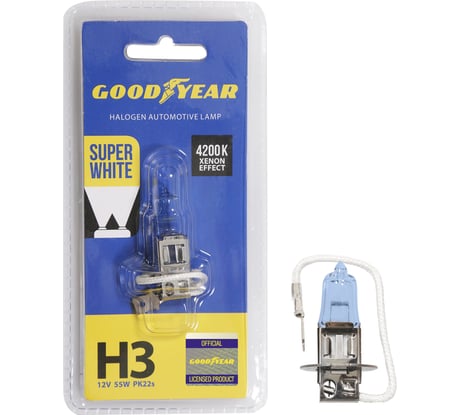 Отзыв Автомобильная галогенная лампа Goodyear Н3 12V 55W PK22s Super White блистер GY013127