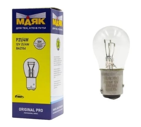 Отзыв Автомобильная лампа накаливания МАЯК P21/4W, 12 В, 21/4W, BAZ15D, Original Pro, уп-ка 10 шт. 01214/10