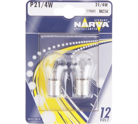 Отзыв Автолампа NARVA P21 4W BAZ15d блистер, 2шт 12V 1 10 178814000