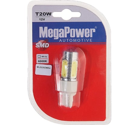 Отзыв Автолампа MEGAPOWER W21/5W W3*16q 13 SMD 5050 WHITE блистер 260лм 6000K 12V M-20384DWбл