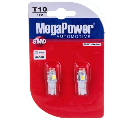 Отзыв Автолампа MEGAPOWER T10W W2.1x9.5d 4 SMD 5050 WHITE блистер 2 шт 6000K 80лм 12V 1 50 10713