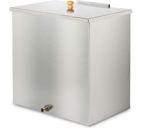 В целом бак понравился. Сделан аккуратно. Есть загнутые края. Крышка с ручкой. Размеры соответствуют заявленным на сайте. Бак не тяжелый, так как металл тонкий.