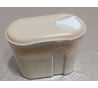 плотный и приятный на ощупь пластик, удобная вращающаяся крышка, которая позволяет быстро засыпать/высыпать.