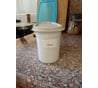 Качественный, прочный, пищивой пластмасс #5. Ручка удобна в переноске, емкость 10 л. Запаха пластика нет. Крышка слабо держит воду.