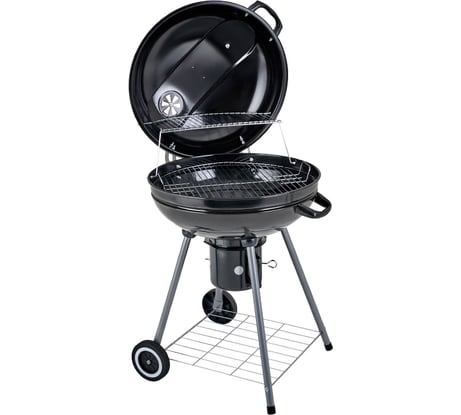 Данный гриль покупался в качестве помощника большого, основного гриля. Очень удобно использовать его когда активная фаза дачного сезона завершена и загородную резиденцию посещаешь нечасто и не надолго. Представляет собой почти полную копию Smokey Joe от именитого бренда Weber. Различия незначительны и на качество приготовления пищи не влияют. Для розжига использую неболее полкилограмма древесного угля или меньшее количество брикетов. Таковы рекомендации производителя! Уголь разжигаю при помощи стартера, они прекрасно разгораются и не гаснут. Высыпаю их на угольную решётку, устанавливаю грилевую решётку, закрываю крышку, открываю всё вентиляционные отверстия - минут через десять можно готовить! После сеанса приготовления вкусной и здоровой пищи чистим грилевую решётку металлической щёткой от остатков продуктов и перекрываем всю вентиляцию - угли без доступа воздуха скоро погаснут. Никакой воды лить не надо! В общем, гриль отличный, только есть одна проблема... Когда собирал его и прикручивал ножки к жаровне от эмалевого покрытия откололся небольшой фрагмент. Не знаю, что будет дальше, но пока это место меня не беспокоит.