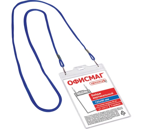 Отзыв Бейдж ОФИСМАГ вертикальный, большой, 120x90 мм, на синем шнурке 45 см, 2 карабина 235719