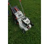 Мотор решает, конечно. Вроде китайцы уже подтянулись по качеству, но все равно, как заводится и работает Бриггс, это того стоит. Никаких заслонок, просто прижимаешь скобу и вытягиваешь трос, заводится с пол тычка. Но отмечу и хорошее качество самой газонокосилки. Хорошо покрашена, дека глубокая, нож толстенный с большими лезвиями и подкрылками. Впечатления очень позитивные. И цвет на траве очень в тему.