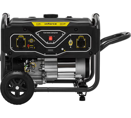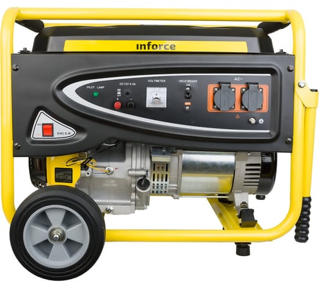 Генератор Inforce используем на даче, у нас часто отрубается электричество, генератор незаменим. Данная модель на 5,5 киловатт максимальной мощности, 5 киловатт номинальной. Главное всегда помнить о пусковых токах. К примеру, циркулярная пила имеет потребляемую мощность 2 киловатта, а пусковая нагрузка - 5,5 киловатт!. И вот если у вас что-то уже включено, и вы запускаете параллельно такую циркулярку - в момент пуска будет явный перегруз, что нехорошо. По работе генератор довольно тихий. Работает ровно, стабильно. Есть ручки для переноски и колёса для перевозки. Одному перевозить вполне реально. Колёса вполне прочные, не вызывают опасений. Вес генератора вполне выдерживают. Если планируете перевозку или, что более важно, переноску - не забывайте, что в технических характеристиках указан сухой вес. Если вы зальёте 20 литров бензина, будет заметно тяжелее. Кстати, насчёт заливки топлива. Крышка бензобака расположена строго посередине. Лично у меня залить бензин, не пролив, не получается. Воронка у меня есть, если что. Но заливная горловина сбоку была бы гораздо удобнее. Писали люди, что аккумулятор был севший при покупке. Не знаю, у меня аккумулятор отлично заряжен был. Генератор сразу запустился, с первого раза. Кнопка "старт/стоп". Но есть и ручной запуск. На корпусе есть наклейка, подробно описывающая процедуру запуска генератора (а также процедуру выключения). Там всё просто. Но ознакомиться стоит. Также на корпусе установлен дисплей, показывающий вольтаж. Кстати, насчёт этого. На данном генераторе установлен стабилизатор AVR, который следит за перепадами напряжения. Даже при высоком пусковом токе той же циркулярки напряжение останется на своём уровне. Небольшой провал всё же возможен. Дело опять же в высоком пусковом токе. Но это нормально, если на инструменте нет плавного пуска. Пойдём далее. Розетки на передней панели защищены крышками. Есть датчики уровня масла и топлива. Это очень удобно, особенно датчик топлива. Отдельно хотел бы отметить вот какую функцию. Генератор автоматически отключится при превышении нагрузки или коротком замыкании. Для частного дома это чрезвычайно важно. По обслуживанию всё просто: например, есть быстрый доступ к воздушному фильтру. Также недалеко и свеча. Горловина бензобака - я уже упомянул, находится сверху посередине. Также заливная горловина масла довольно удобно расположена. Глушитель дополнительно защищён накладками, чтобы человек не обжёгся. В целом, генератор продуманный, надёжный. Если правильно рассчитывать токи, будет служить верой и правдой долгие годы.