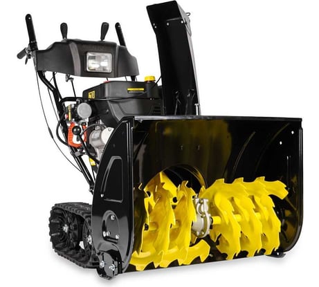 Для нашей базы отдыха приобрели два таких снегоотбрасывателя. Снега у нас уже сейчас выше крыши, нужно чистить дорожки, парковку, проход к озеру (там у нас зимой рыбалка и другие развлечения). Выбирали мощный аппарат, чтобы точно справлялся. И вот согласовали между собой покупку двух таких красавцев. Я чуть позже поеду на базу и обязательно дополню отзыв фотографиями и видеообзором на данную технику, потому что такой информации в интернете мало. Итак, снегоотбрасыватели (или снегоуборщики, кому как нравится) на гусеничном ходу. Моё мнение, что это на порядок круче, чем колёса. Проходимость замечательная. Это как в детстве мы смотрели на трактор на гусеничном ходу и удивлялись, как он через канавы спокойно переезжает. Здесь же маленькая версия такого трактора. Мощность двигателя 12 лошадей. Вообще, этими машинами у нас на базе управляют рабочие, это их зона ответственности. Но иной раз не могу удержаться, чтобы не запустить движок и не почистить самостоятельно какую-нибудь территорию. Запуск либо по старинке ручку дёрнуть, либо от сети 220 вольт. Ковш просто огромный, широкий и высокий. Но иногда и такого ковша в наших условиях недостаточно, если запустить где-то участок. По поводу шнека хочу особенно рассказать. Эти металлические монстры перемалывают любой снег, как мясорубка кусочек хлеба. Слежавшийся снег, лёд, абсолютно неважно. Всё перемалывается, обрабатывается и вылетает из жёлоба как ядро из пушки. Кстати, поворот жёлоба можно регулировать как угодно, угол до 180 градусов. Ну и дальность регулируется, само собой. Когда я смотрю со стороны, как наши ребята работают с этими машинами, чувство какого-то трепета возникает, что ли. Там, где секундой ранее был сугроб высотой в полметра, сейчас появляется очищенная от снега дорожка, на которой только следы гусениц и остаются. Что по управлению машиной. Все рычаги прямо перед оператором, всё весьма удобно. Фара есть, включается с кнопки. Кстати, светит отлично, после наступления темноты работать комфортно. Про двигатель я упомянул уже, он 4-тактник, соответственно, заливаем чистый 92-ой. Топливный бак на 5, 5 литров. Как часто приходится дозаправлять? Это зависит от передачи, от оборотов, от многих факторов. Да, про передачи не сказал - их 6 вперёд и две назад. Переключаются без проблем. Машины пришли к нам без масла в двигателях, учитывайте это при покупке. Машина очень тяжёлая, не надейтесь её куда-то руками поднять. Но за счёт своего веса она имеет еще лучшую проходимость. Крайне довольны мы покупкой, если средства позволяют, то это просто отличный вариант для очистки территории на вашем участке или еще где-то. Оценка - 5!