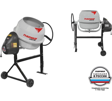 на фото в магазине другая мешалка, ящик с двигателем металлический в цвет мешалки, рама цельная с низу по центру, а которая пришла у неё стык там, и ящик с двигателем пластиковый . колёса хорошие большие как и хотел. в работе не проверял.