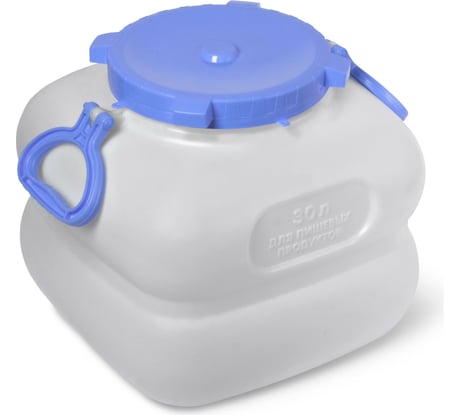 Хороший пищевой пластик без запаха, достаточно толстый (не синяя бочка конечно, но вполне толстый). Хорошая форма корпуса препятствует деформации при наполненной фляге. Для воды наверное более удобен синий цвет корпуса - он непрозрачный, по-идее вода не должна активно зацветать. Для браги отлично подойдет белый - сквозь стенку виден уровень, процессы брожения, в финале процесса - степень осветления браги, Оличная широкая горловина: удобно мыть, заливать, перемешивать содержимое, Крышка толстая, для врезки гидрозатвора идеальна, с герметизирующей прокладкой внутри (герметизирует отлично). Очень удобные ручки - переносить бак даже в заполненном под край состоянии очень удобно. Для контроля температуры браги (если бак не наливать под самое горлышко) можно врезать ниппель для градусника и нагревателя не в крышке (что не всегда удобно), а в верхних краях бака, которые выступают по краям от крышки (в синей бочке или в ведре подобных выступов нет). Очень удобен бак для перевозки в машине, намного удобнее, чем канистры. Благодаря своей практически идеальной (кубической) форме он очень устойчив, так как имеет широкое основание и небольшую высоту (+легко умещается в багажнике). Закручивается крышка легко: что бы попасть в резьбу нужно сначала крутить крышку против часовой стрелки до момента, пока она не соскочит с первого витка - в этом месте начало резьбы; сразу после соскока нужно начать закручивать по часовой. Для воды, жидких пищевых продуктов, браги - настоятельно рекомендую!