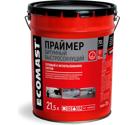 Отзыв Быстросохнущий битумный праймер ECOMAST 21,5 л, металлическое ведро 24642