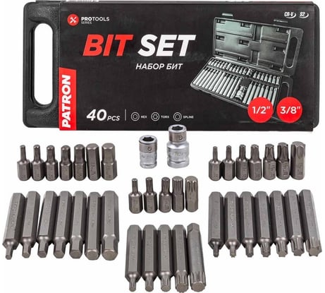 Отзыв о наборе бит Patron (10мм)(75/30мм:T20-T55,H4-H12,M5-M12), в пластиковом кейсе P-4401C