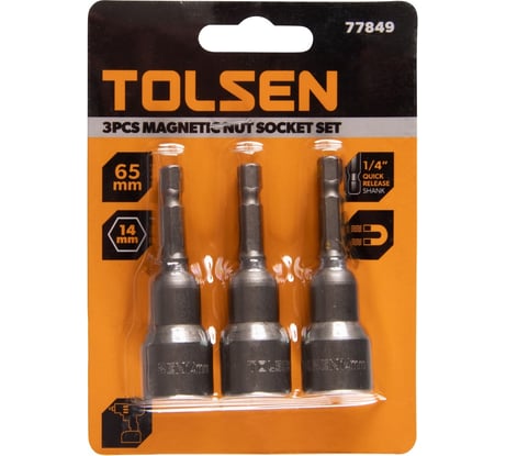 Отзыв Набор головок шестигранных магнитных для шуруповерта 14х65 мм, 1/4", 3 предмета TOLSEN 77849