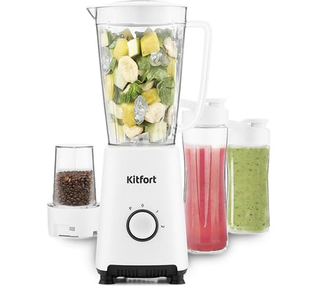 Выбирала Kitfort, потому что знаю этот бренд и довольна им. Понравилось, что помимо блендера есть кофемолка и измельчитель, а цена не намного больше, чем у моделей просто стационарных блендеров. Хотелось бы помощнее, но помощнее и цены больше. Как оказалось, мне этой мощности хватает. Смузи, молочный коктейль взбивает отлично. Томатный сок из томатной пасты смешивает замечательно, приятная текстура получается. Кофемолка перемалывает зёрна хорошо, а вот репчатый лук для фарша в измельчителе не получилось измельчить. Буду пробовать ещё. Но так как измельчитель для меня не столь важен, а выбирался как допфункция (важен был именно блендер), то я прибором довольна. Не жалею, что выбрала именно эту модель.