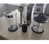Универсальное устройство для кухни. В состав прибора входит блендер объемом 500 мл, такой же термос с крышкой, кофемолка, честнокочистка, измельчитель с чашей, бутылка с ручкой и крышкой. В крышке бутылки силиконовый клапан с отверстием под трубочку (в комплекте, очень твердая, не гнется). Стекло бутылки толстое. Честнокочистка чеснок чистит хорошо, остается только выбрать его из кожуры. На бутыль блендера есть крышка, можно взять напиток с собой. В общем взбивает, чистит, мелет и хранить удобно. В комплек