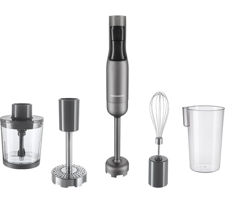 Давно хотела приобрести себе блендер, так как это необходимый прибор на кухне. У данной модели плавная регулировка скорости, всего их шесть, включая турбо режим. Большой функционал за счёт количества насадок, венчик, для пюре, для нарезки кубиками и насадка тёрка. Объем измельчителя 500 мл, объем кувшина блендера 2 л. Также в комплекте есть мерный стакан его объем 600 мл. Достаточно мощный, легко перебивает, либо нарезает овощи и даже мясо. Простой и удобный в использовании, безусловно я рада покупке!