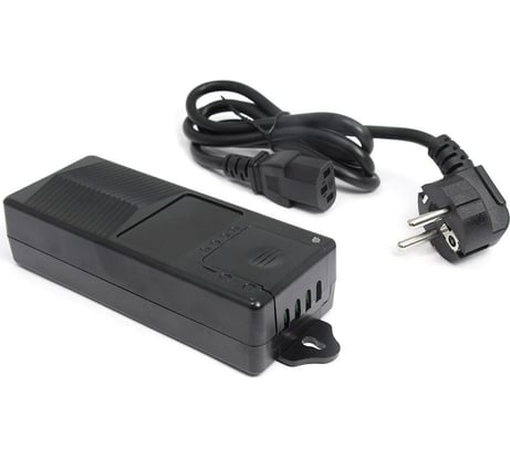 Мощный, есть защита от КЗ, к клеммам легко подключить любой провод. Есть небольшая регулировка выходного напряжения.
