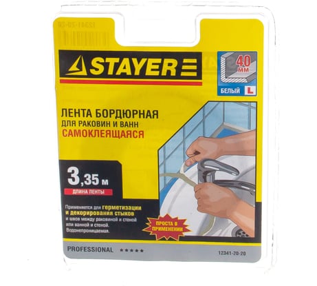 Отзыв о самоклеящейся бордюрной ленте для ванн и раковин STAYER профиль L цвет белый 20 x 20 мм х 3.35м 12341-20-20