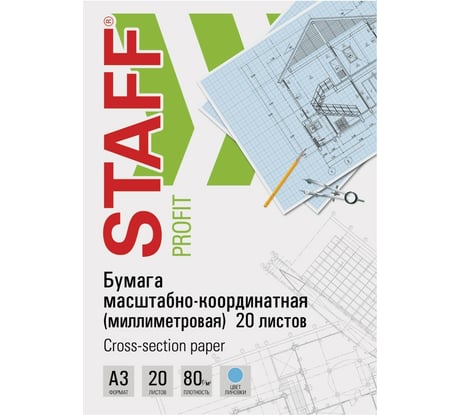 Отзыв Масштабно-координатная миллиметровая бумага STAFF папка, большой Формат А3, голубая, 20 листов, плотная 80 г/м2 113487