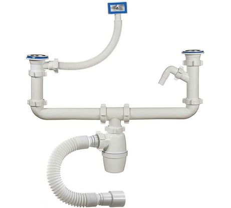 Хорошее (на первый взгляд) качество пластика и прокладок, комплектность полная. Есть две прокладки (плоская и полукруглая) для переливного шланга, так что подойдет как для круглых, так и для прямоугольных моек