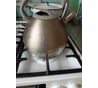 Отличный чайник. Тяжёлый, металл точно есть. Дно широкое, подходит на большую конфорку. Ручка не горит - и это отлично, сначала показалось, что ручка будет подгорать, но нет. На небольшой и средней конфорке ручка вообще просто теплая, на большой - взять сразу с огня голыми руками может и не получится, но остывает быстро, полминуты и можно брать голыми руками.