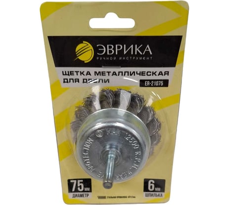 Отзыв Щетка для дрели ЭВРИКА 75мм, чашка со шпилькой 6мм, стальная проволока 0,5мм ER-21075
