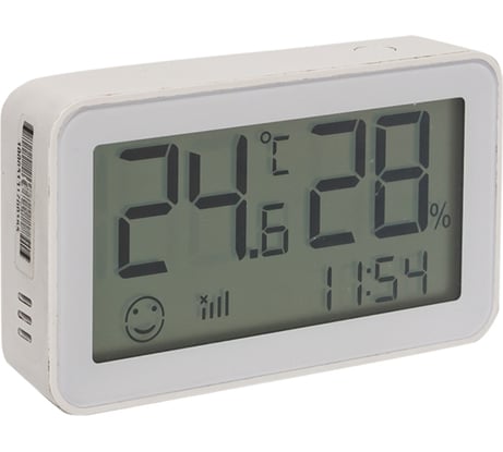 Симпатичный, с подключением никаких проблем. Встроенный магнит, на холодильнике держится. А вот показания влажности завышает и сильно